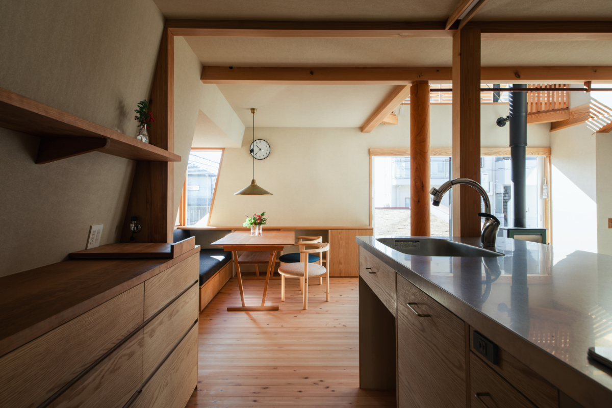 薪ストーブや造作キッチンをはじめとした